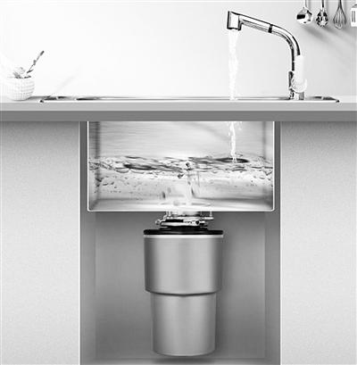 这时,厨余垃圾处理器就派上用场了。它可以快速将厨余垃圾磨研,通过下水管道直接排入污水处理系统,不仅解决了复杂的垃圾分类问题,还可以从源头减少湿垃圾的收集量,降低垃圾收运和终端处理压力。